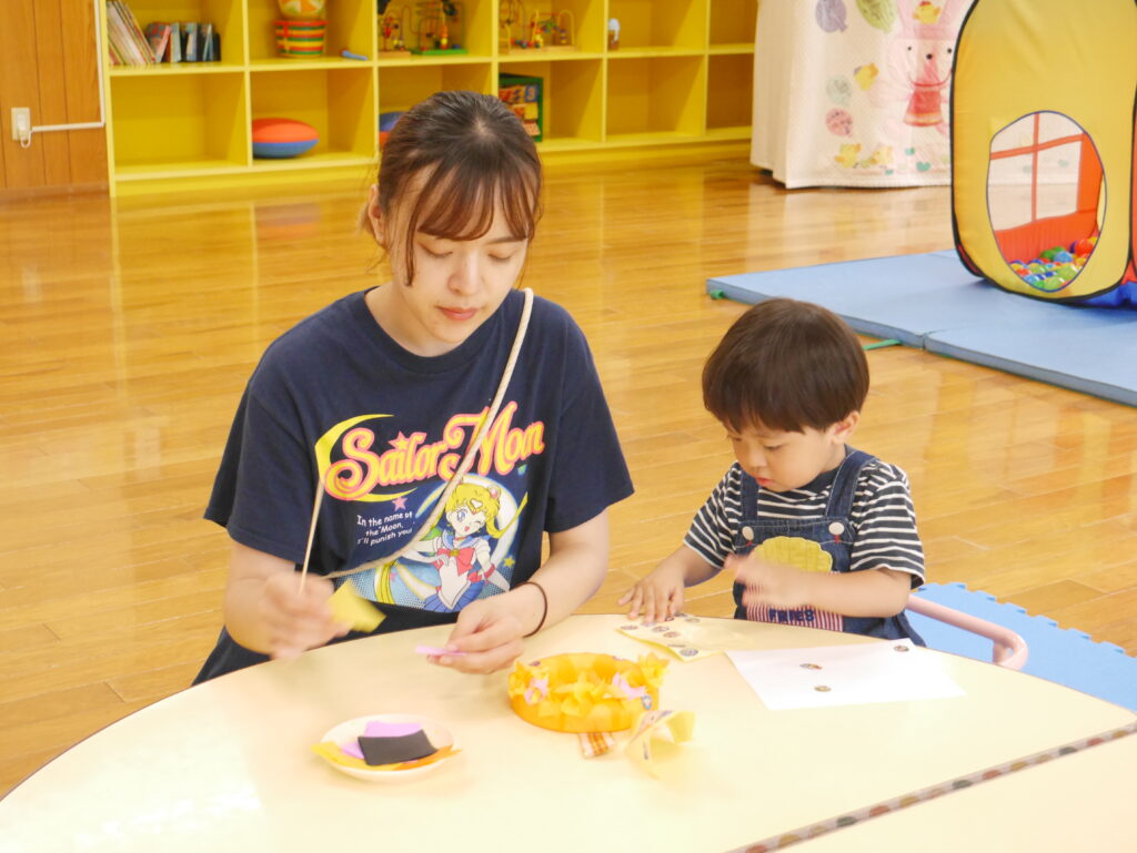 お母様のお隣で、シール貼りをしながら一緒に作っていたNくん。