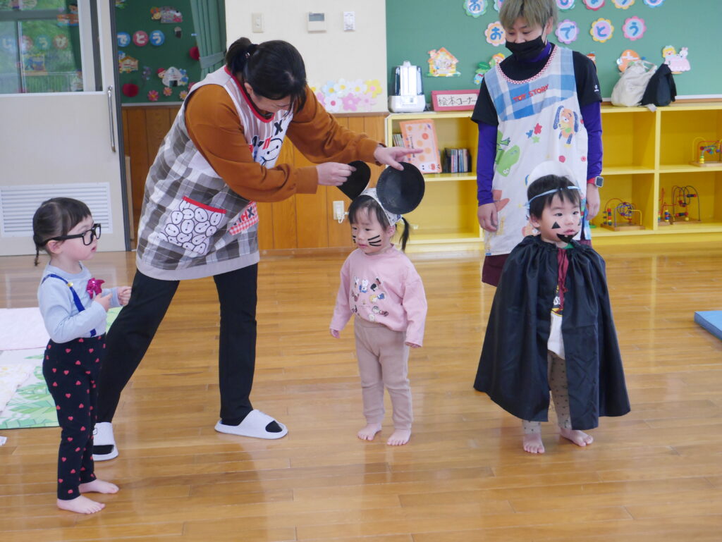 そして、2組で少し寂しかったので、1歳児ばら組さんと2歳児ちゅうりっぷ組さんに、パーティーを盛り上げに来てもらいました★