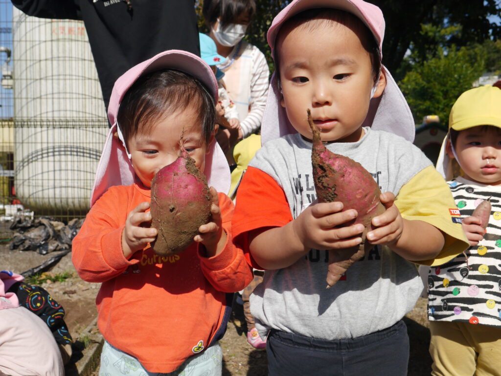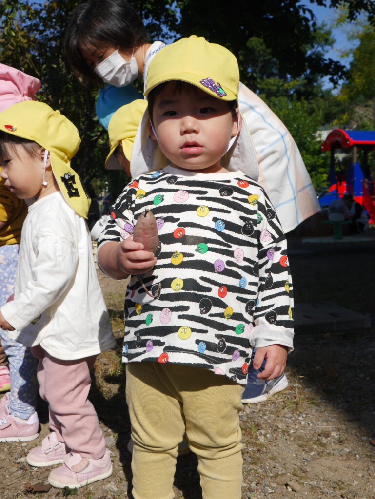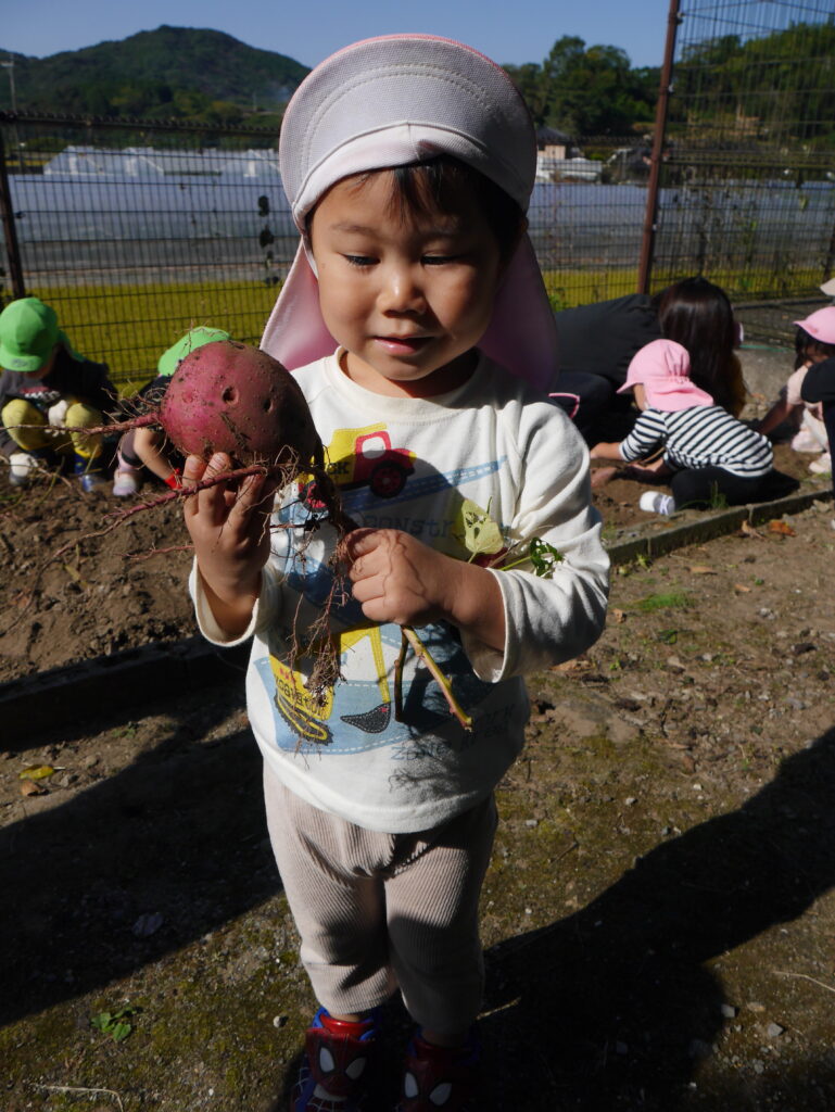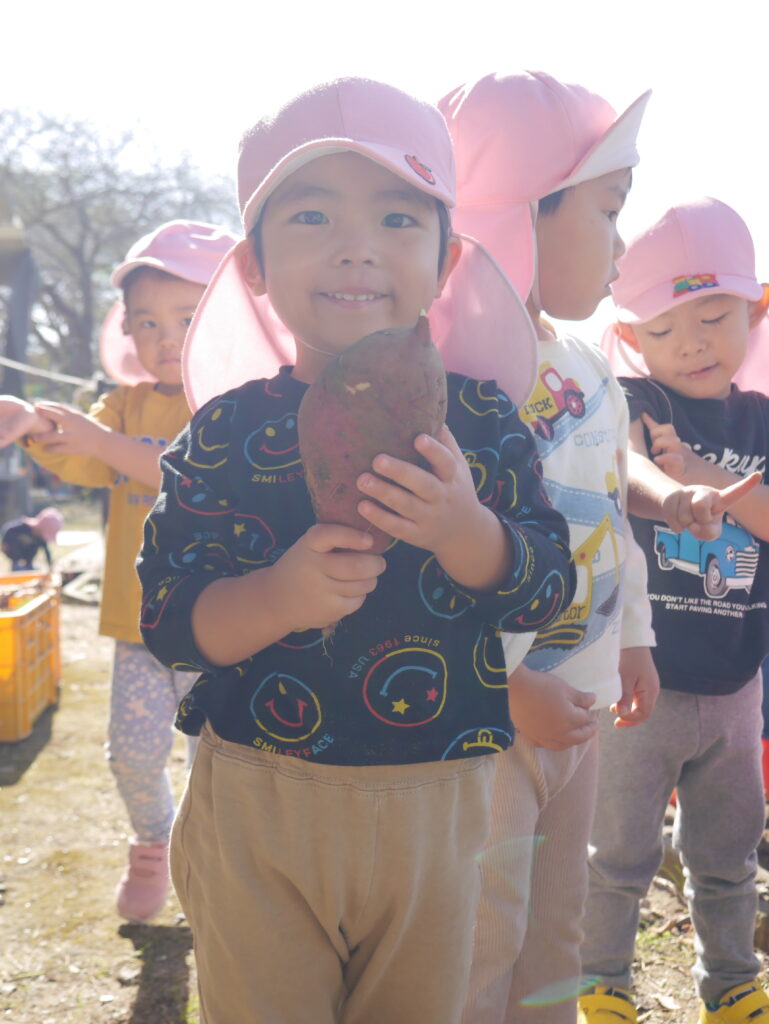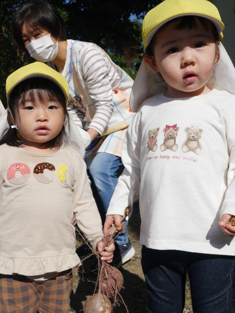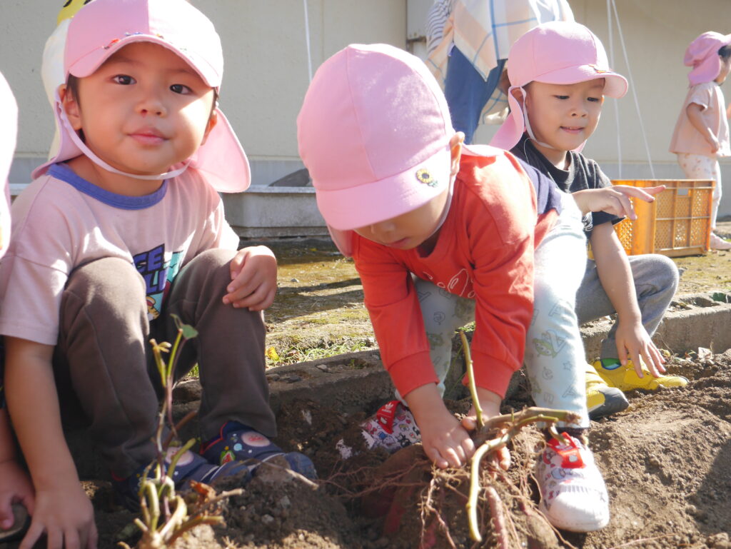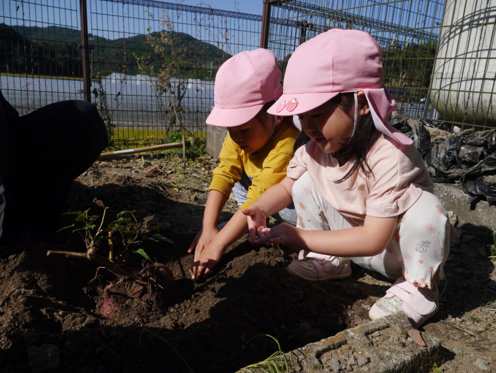 もも組さんは、保育園の畑に植えた芋を掘ってもらいました🍠