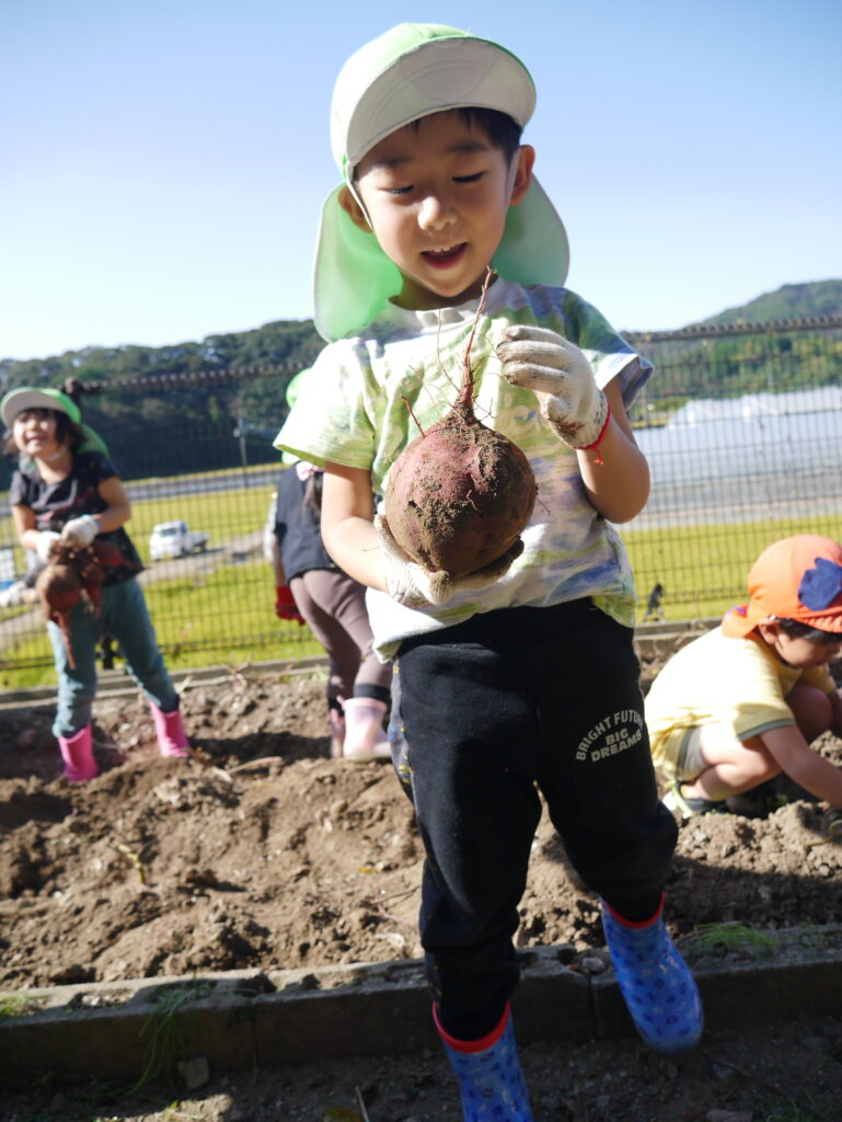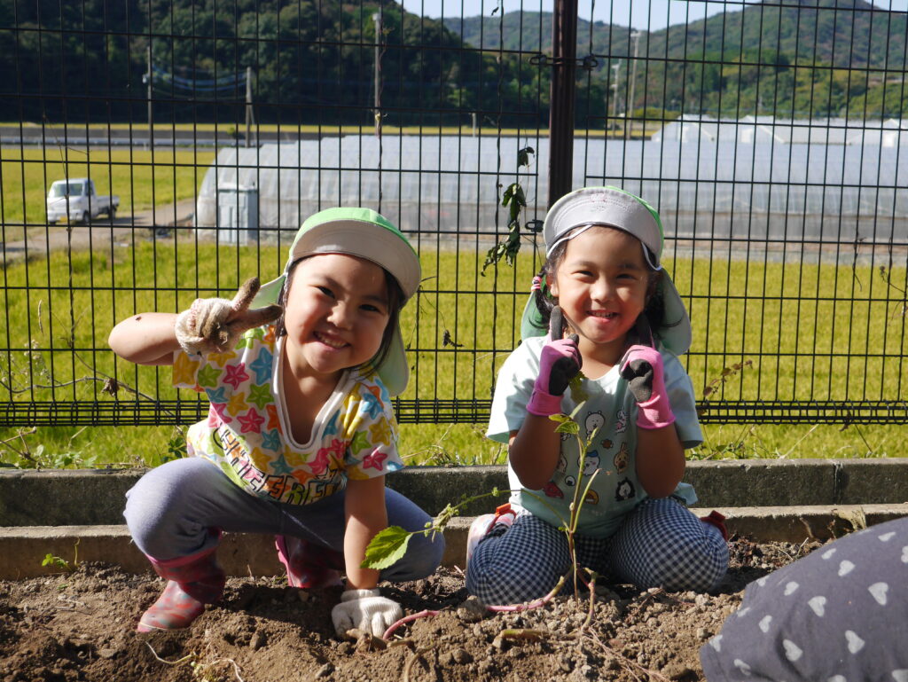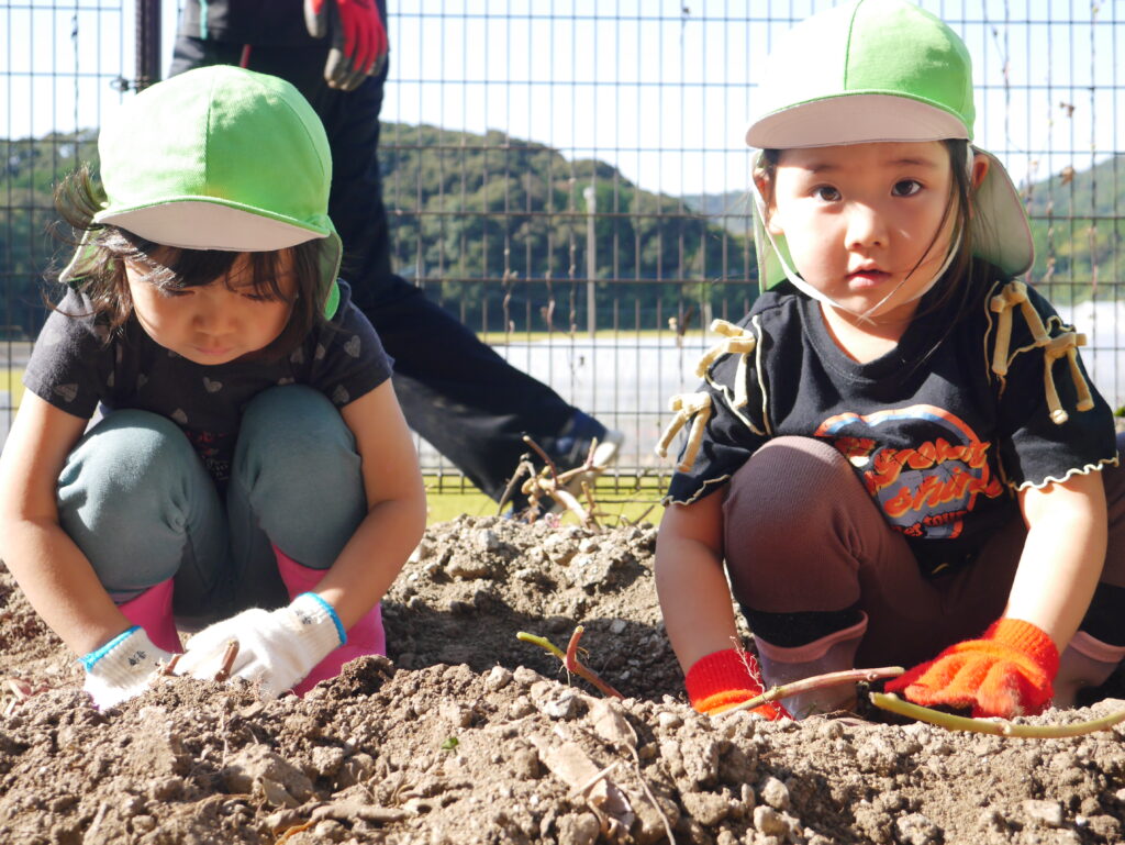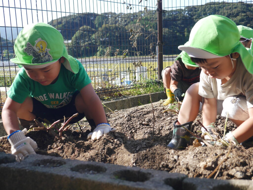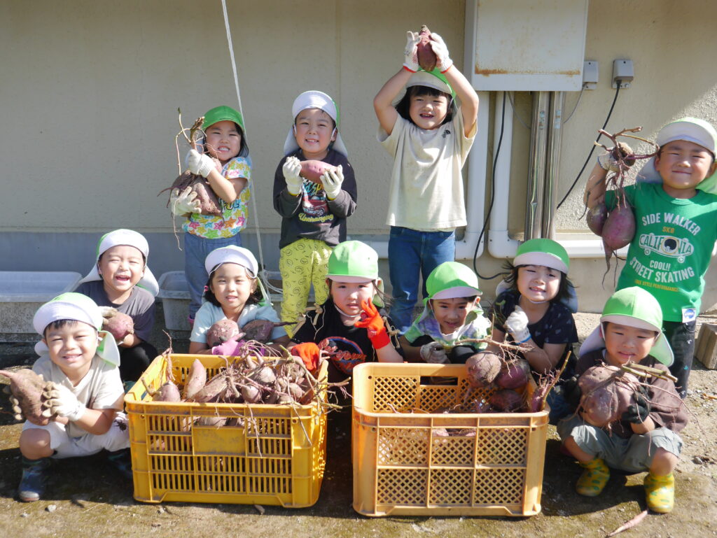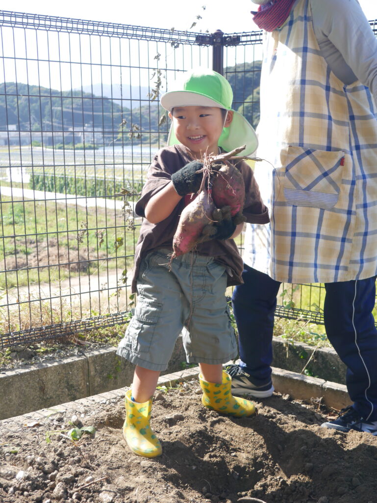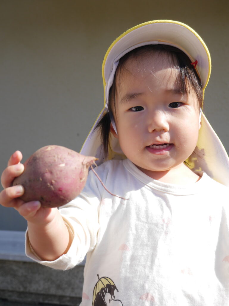 もも組さんは、保育園の畑に植えた芋を掘ってもらいました🍠