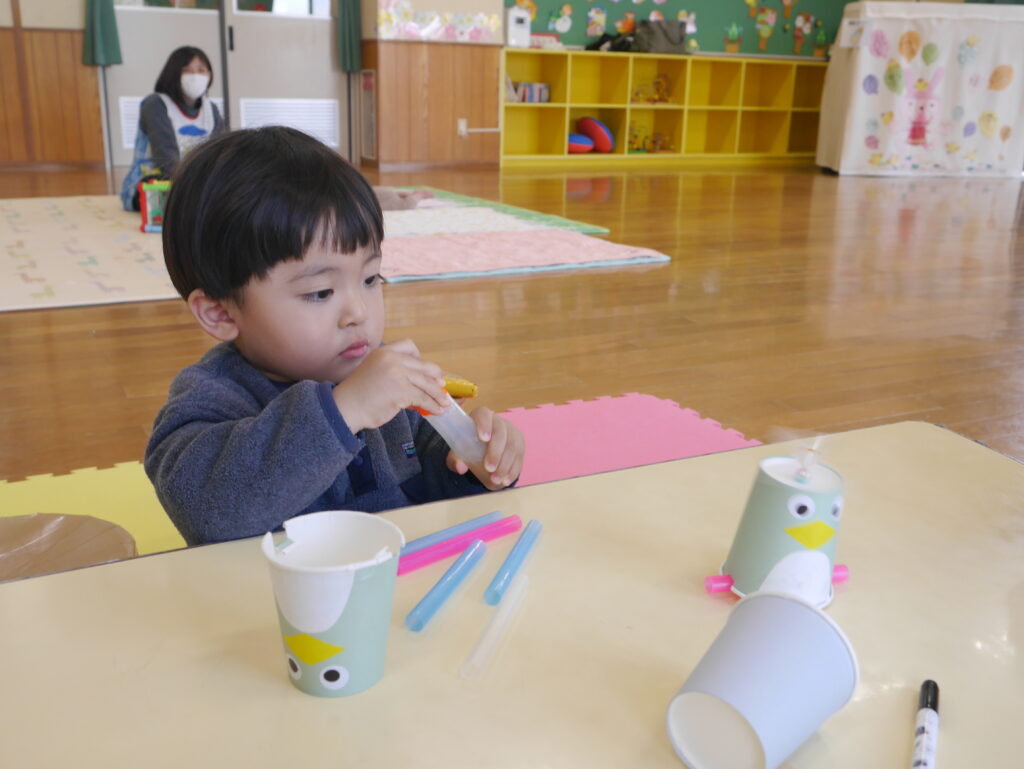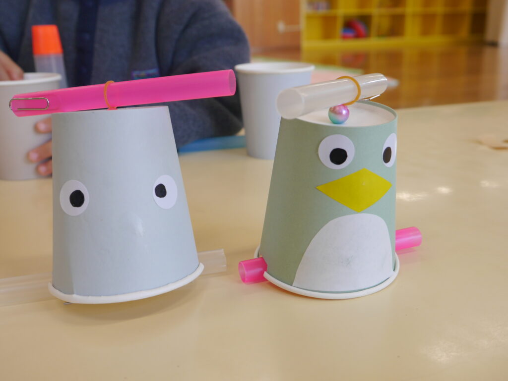 紙コップを使って、カタカタ動くペンギンのおもちゃを作りましたよ🐧